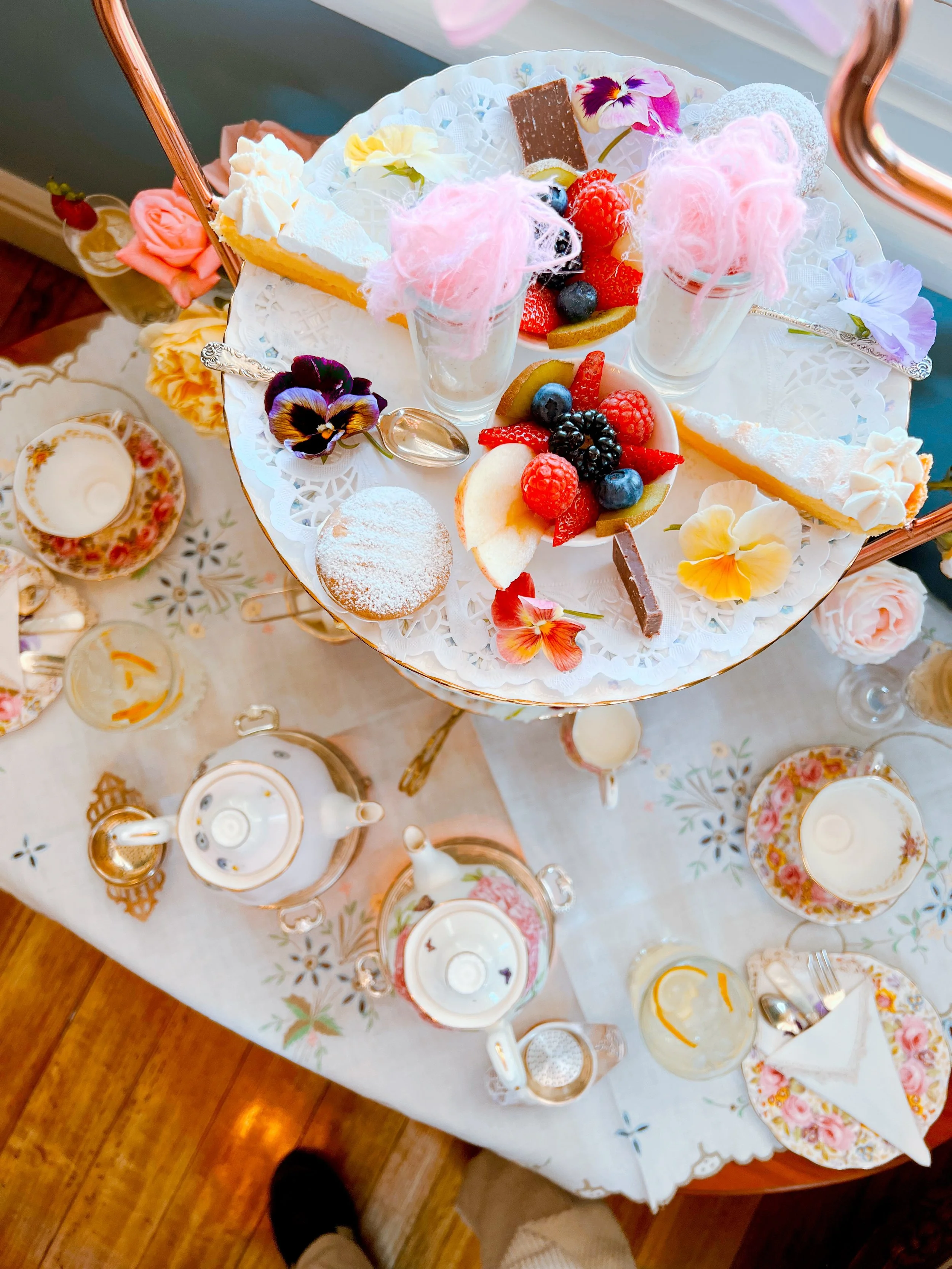 Our beautiful high teas are served on 3 tier stands alongside our Royal Albert crockery and polished silver cutlery. High teas are served in our guest dining room on tables decorated with embroidered tablecloths, napkins and freshly picked flowers from our garden.