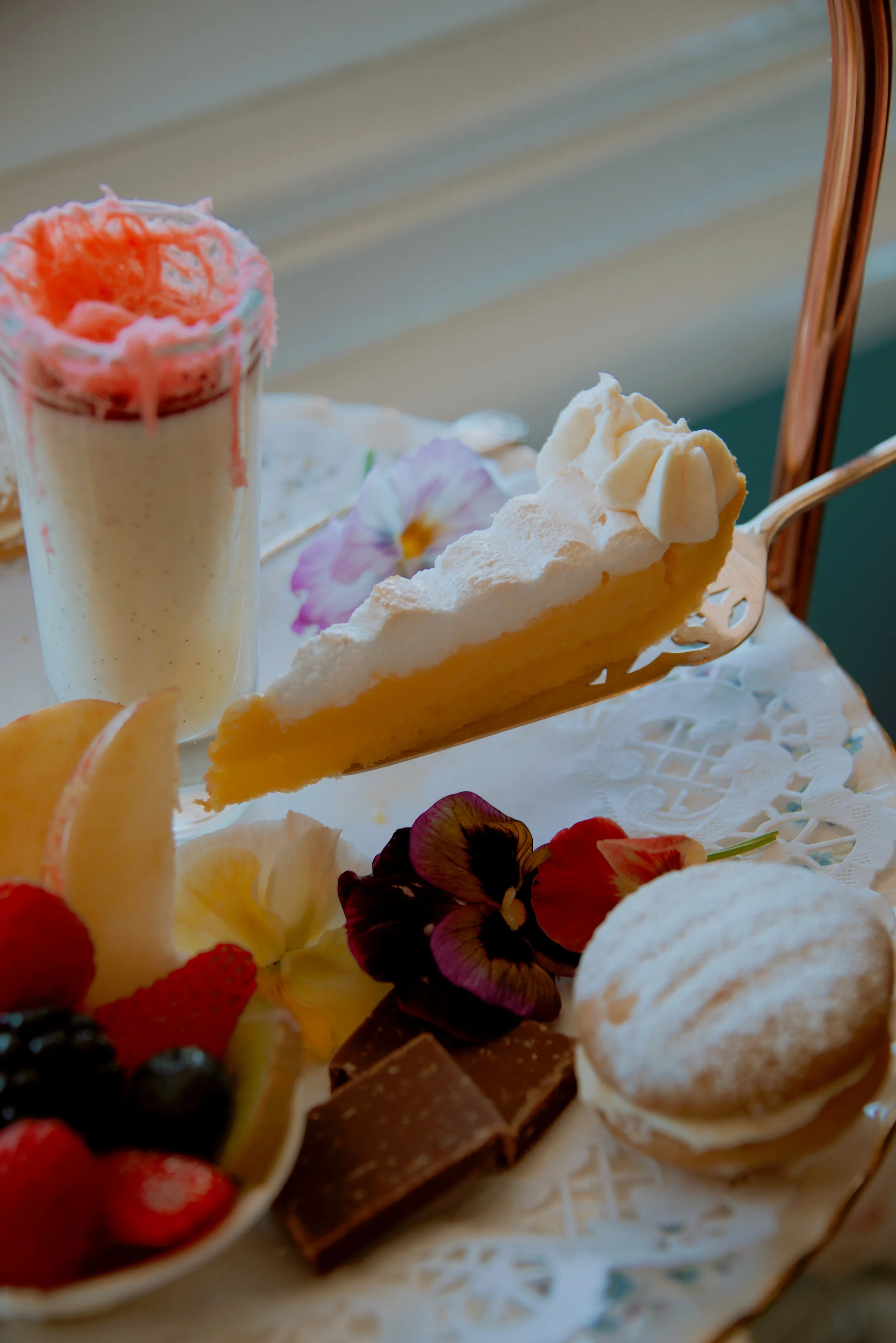 Our in house High Teas include 3 ribbon sandwiches, 2 mini savouries, 2 fluffy scones with Tasmanian raspberry jam and cream, 3 mini sweets, seasonal fruit and unlimited loose leaf tea or 1 cup of coffee ($5 for additional serves).